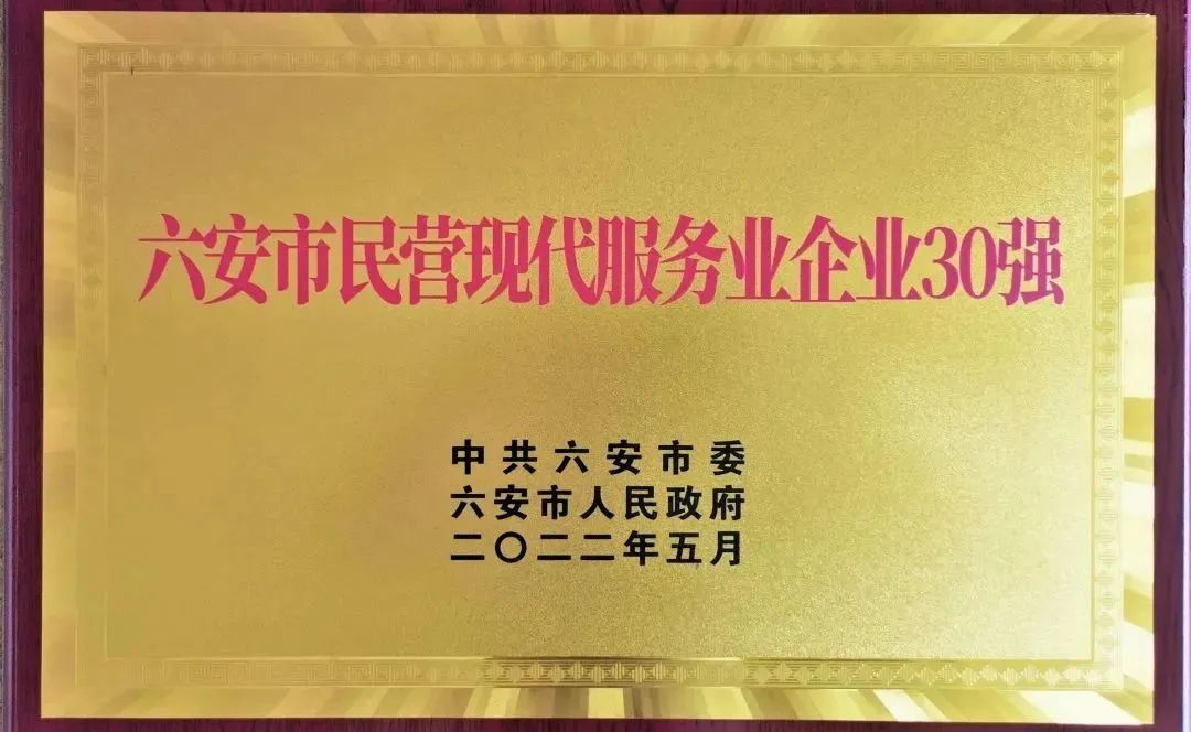 “六安市民營現(xiàn)代服務(wù)業(yè)企業(yè)30強”