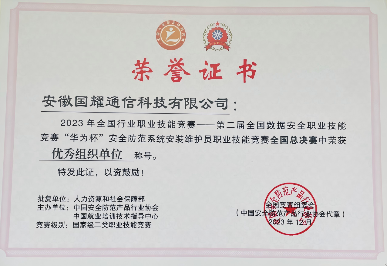 這些獎(jiǎng)項(xiàng)不僅僅是一份榮譽(yù),更是對(duì)國(guó)耀通信在數(shù)據(jù)安全領(lǐng)域的高度認(rèn)可。它標(biāo)志著國(guó)耀通信在安全防范系統(tǒng)安裝維護(hù)方面達(dá)到了領(lǐng)先水平,為行業(yè)樹立了標(biāo)桿。同時(shí),也激勵(lì)著國(guó)耀通信在未來(lái)的發(fā)展道路上,繼續(xù)砥礪前行,為保障數(shù)據(jù)安全、推動(dòng)行業(yè)發(fā)展貢獻(xiàn)更多的力量。