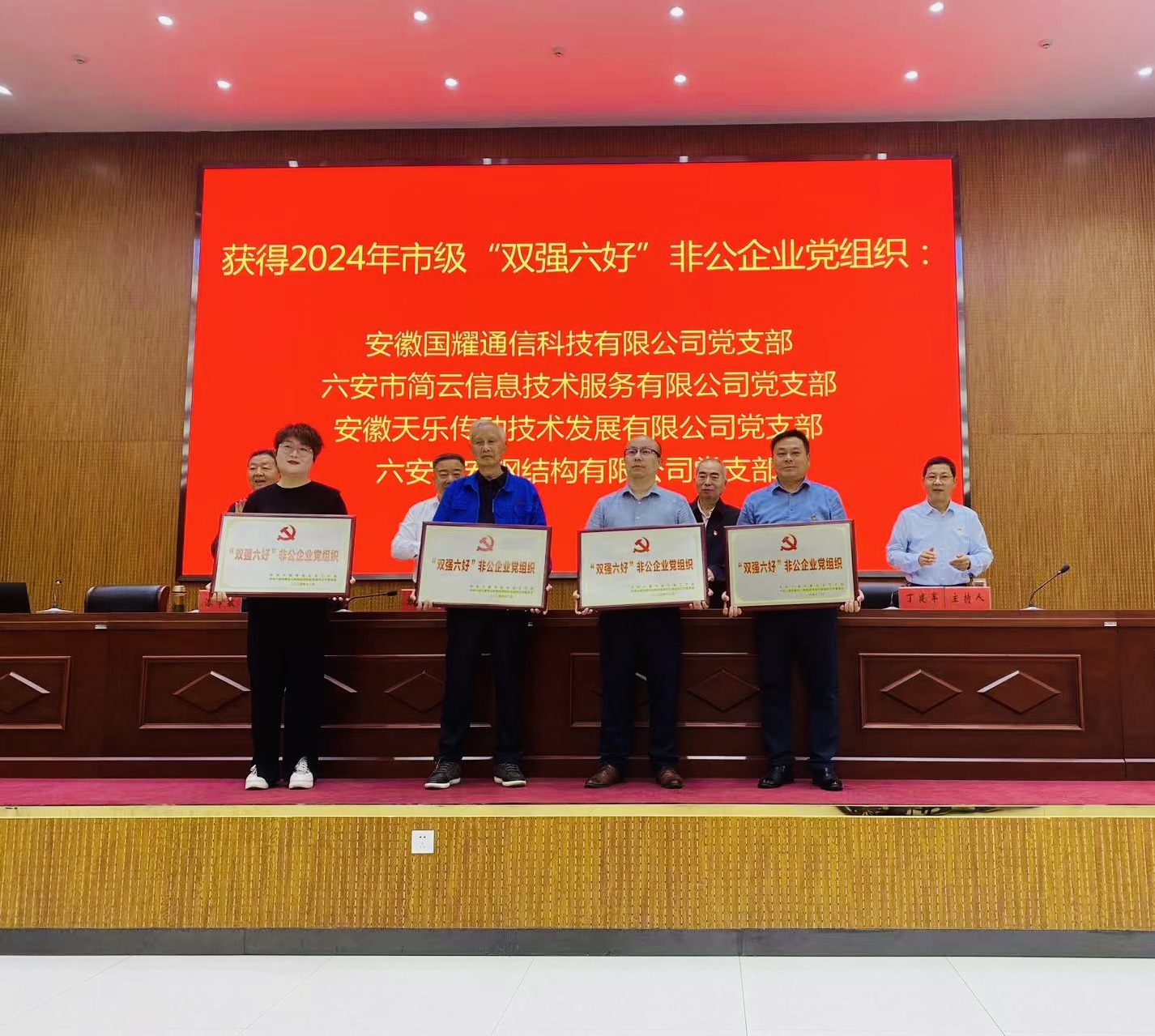 在黨建引領(lǐng)企業(yè)發(fā)展的征程中,安徽國耀通信科技有限公司收獲了一項(xiàng)重大榮譽(yù)!近日,安徽國耀通信科技有限公司黨支部被正式授予2024年市級“雙強(qiáng)六好”非公企業(yè)黨組織稱號,這不僅是對國耀通信黨建工作的高度認(rèn)可,更是對公司多年來堅(jiān)持黨建與業(yè)務(wù)深度融合發(fā)展模式的充分肯定。