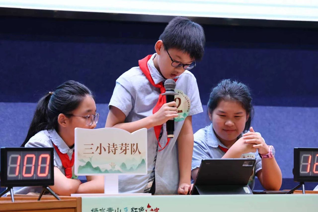 賽事采用14進(jìn)6、6進(jìn)3、3進(jìn)1的三輪晉級(jí)制,每輪比賽均嚴(yán)謹(jǐn)設(shè)置了上述三個(gè)環(huán)節(jié),全面考察選手的詩(shī)詞儲(chǔ)備、反應(yīng)能力和心理素質(zhì)。現(xiàn)場(chǎng)小朋友們興致高昂,熱情觀賽,沉浸式體驗(yàn)了這場(chǎng)穿越古今的“詩(shī)詞文化之旅”。