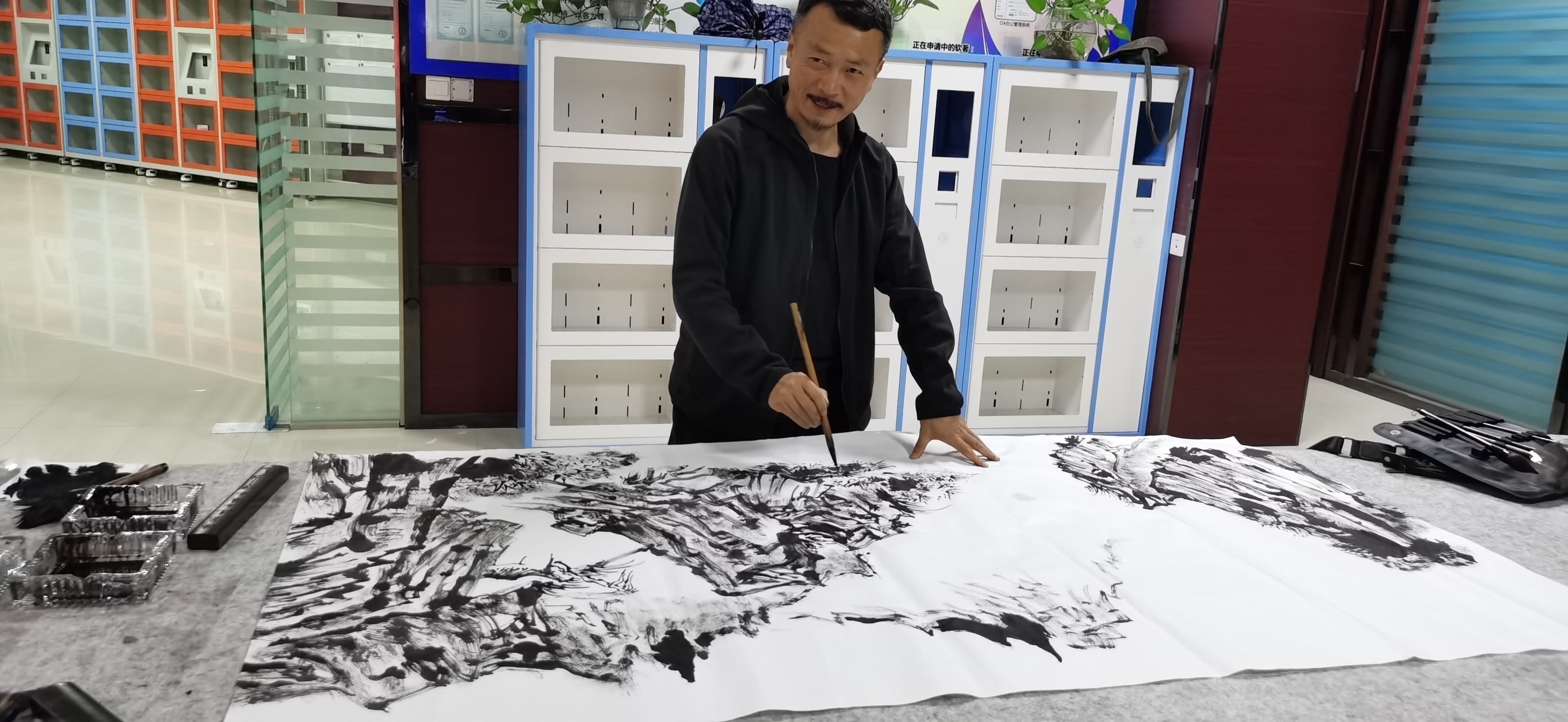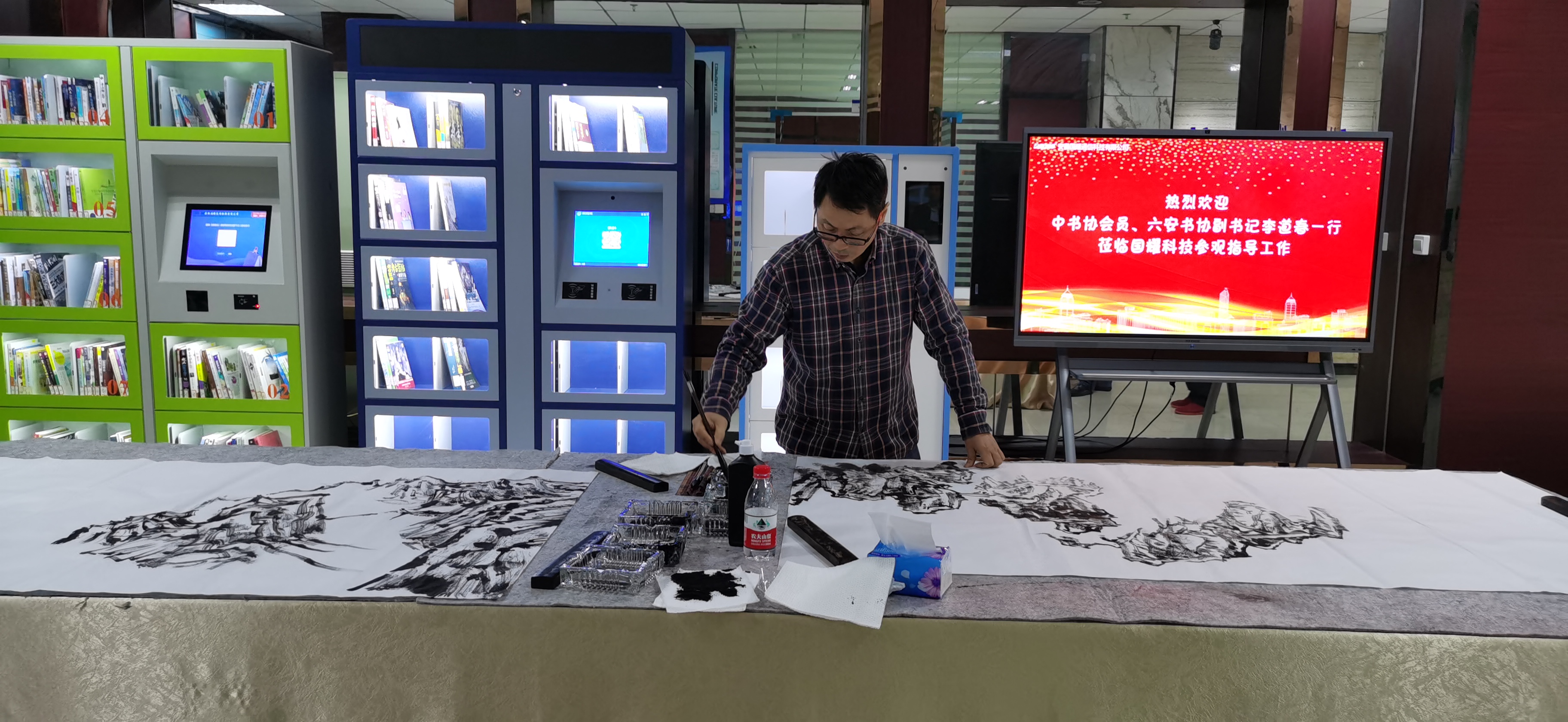 藝術(shù)家們在公司展廳現(xiàn)場揮毫潑墨,筆墨飄香,文化氣息濃郁,既有拼搏奮進(jìn)的勵志篇章,也有日新月異的壯美河山,洋溢著對國耀科技發(fā)展的祝福,展現(xiàn)了藝術(shù)家過硬的書畫水平和深厚的藝術(shù)功底并進(jìn)一步弘揚了傳統(tǒng)文化藝術(shù),營造了歡樂祥和的氛圍。