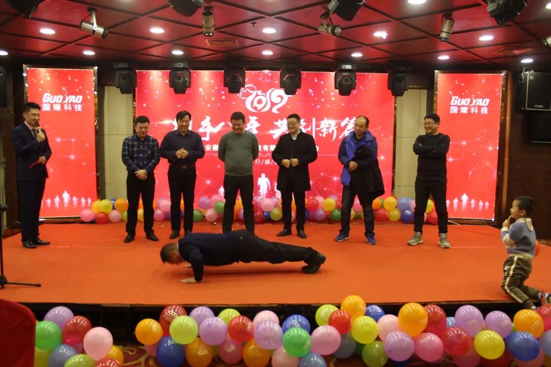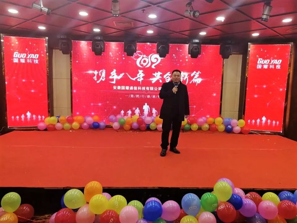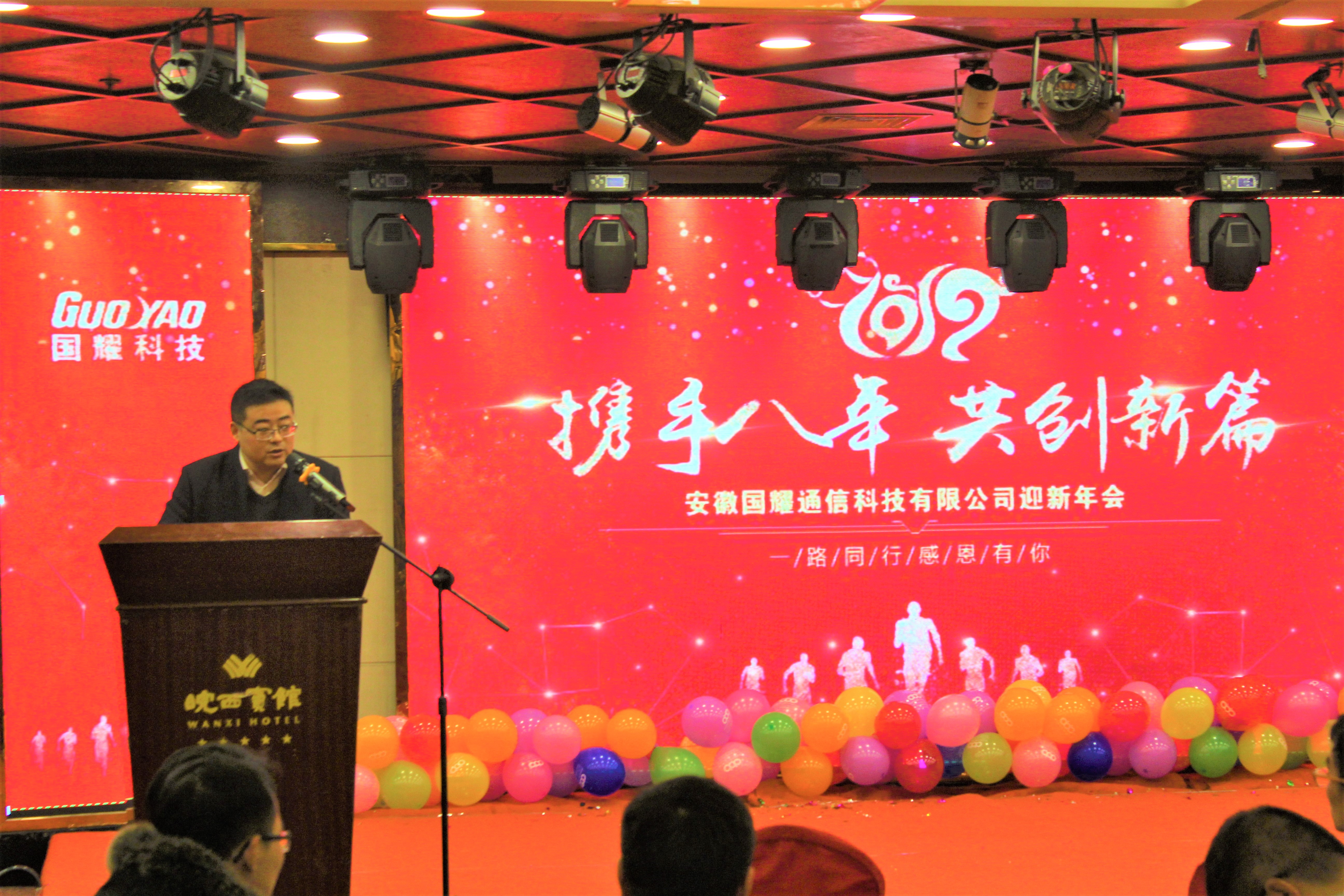 安徽國耀通信科技有限公司董事長陳懷喜上臺致辭并深情地回顧了2018年取得的成績,肯定了同事們一年來的辛勤付出與不懈努力,并且對于新的一年新的挑戰(zhàn),做出了新的展望,規(guī)劃了更長遠(yuǎn)的目標(biāo)。