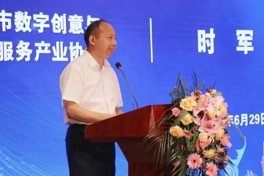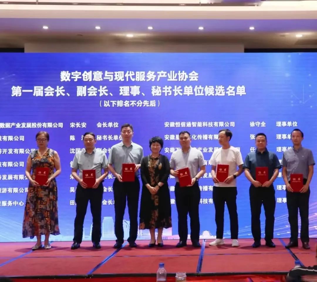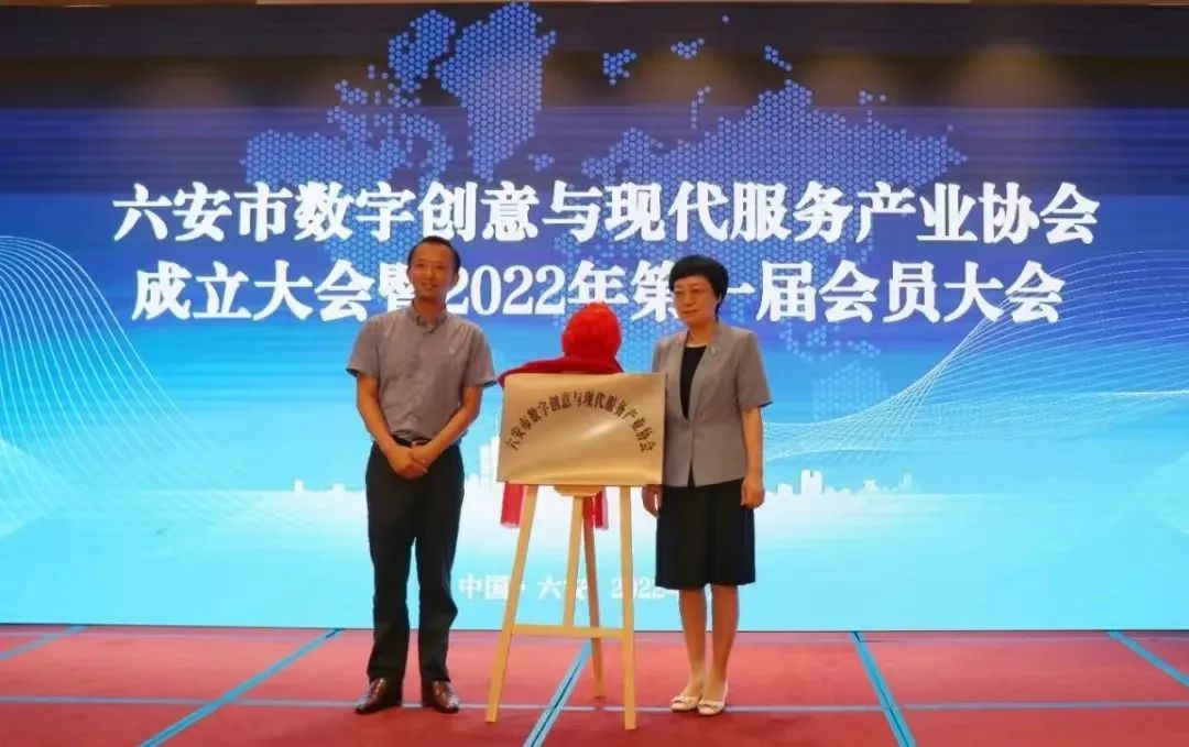 會上,副市長魏武和新當選會長單位法人代表宋長安共同為六安市數(shù)字創(chuàng)意與現(xiàn)代服務產業(yè)協(xié)會揭牌。