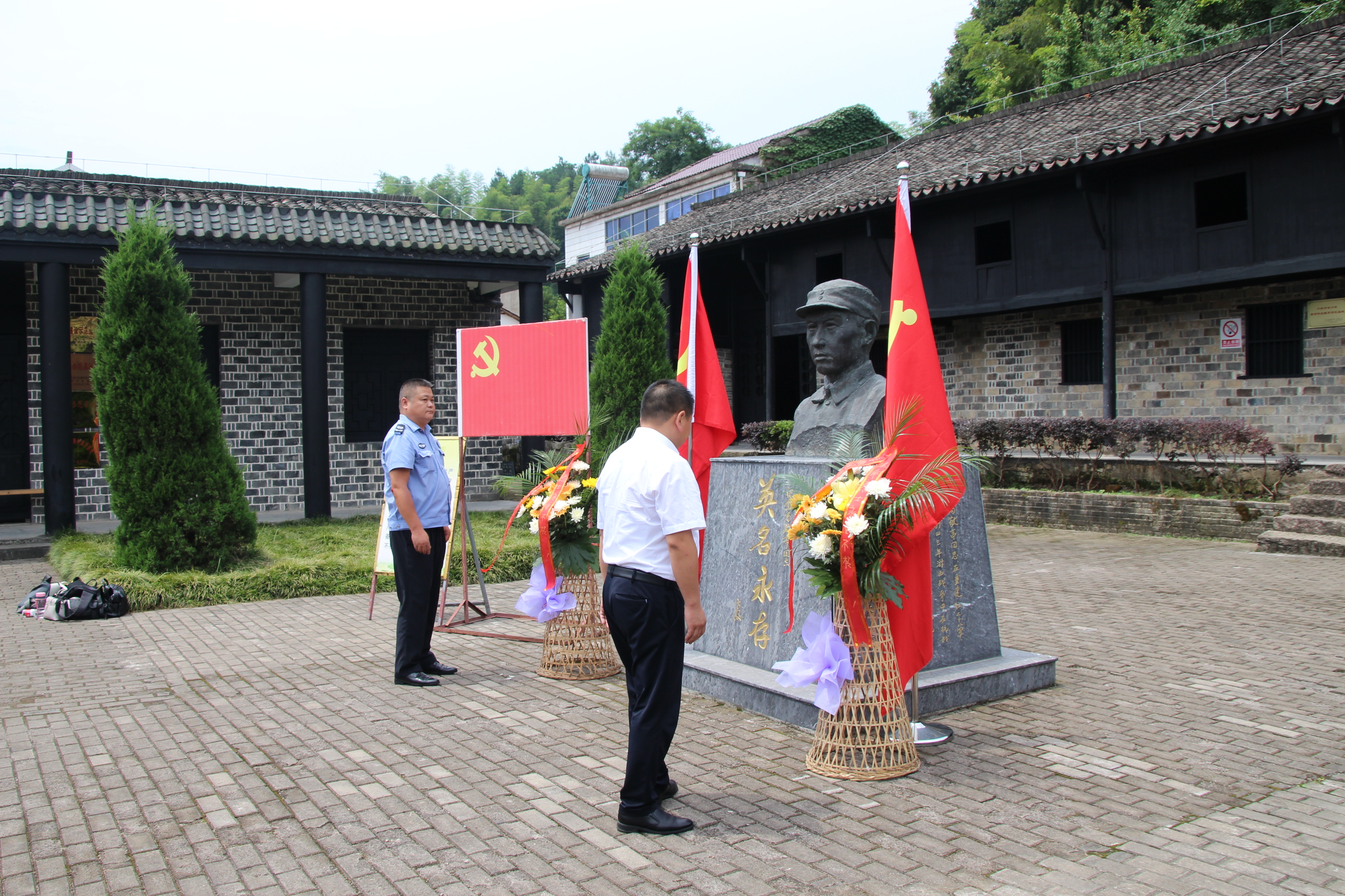 “青山有幸埋忠骨,松柏?zé)o聲祭英靈”,30日上午全體黨員到達(dá)舒城縣萬佛湖新四軍四支隊舊址。瞻仰高敬亭銅像,敬獻(xiàn)花籃、鞠躬默哀,緬懷革命先烈,全體黨員面對黨旗重溫了入黨誓詞,用錚錚誓言彰顯永恒初心。