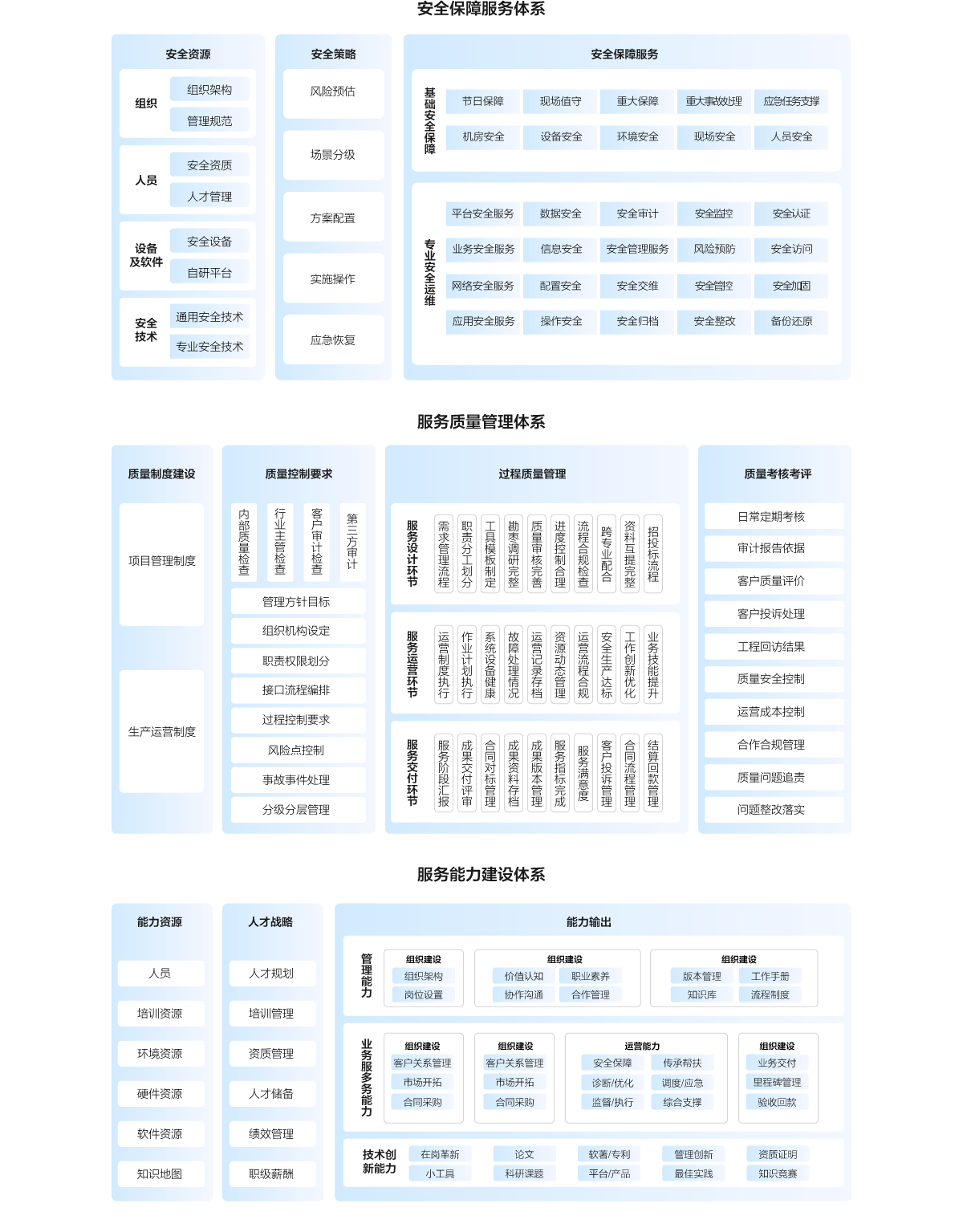 ITSS(Information Technology Service Standards,信息技術(shù)服務(wù)標(biāo)準(zhǔn))就是在這種情況下應(yīng)運(yùn)而生的,它在工信部、國家標(biāo)準(zhǔn)化管理委員會(huì)聯(lián)合指導(dǎo)下,由國家標(biāo)準(zhǔn)化工作組提出,是國內(nèi)第一套成熟的體系化IT服務(wù)標(biāo)準(zhǔn)庫,為國內(nèi)從事IT服務(wù)的企業(yè)、公司及個(gè)人提供了依據(jù)和標(biāo)準(zhǔn),極大促進(jìn)了國內(nèi)IT運(yùn)維技術(shù)的發(fā)展。IT運(yùn)維服務(wù)體系認(rèn)為IT服務(wù)主要由人員、資源、產(chǎn)品和服務(wù)管理組成,并對(duì)這些IT服務(wù)的組成要素進(jìn)行說明和標(biāo)準(zhǔn)化。其服務(wù)體系主要由安全保障服務(wù)體系、服務(wù)質(zhì)量管理體系和服務(wù)能力建設(shè)體系組成。
